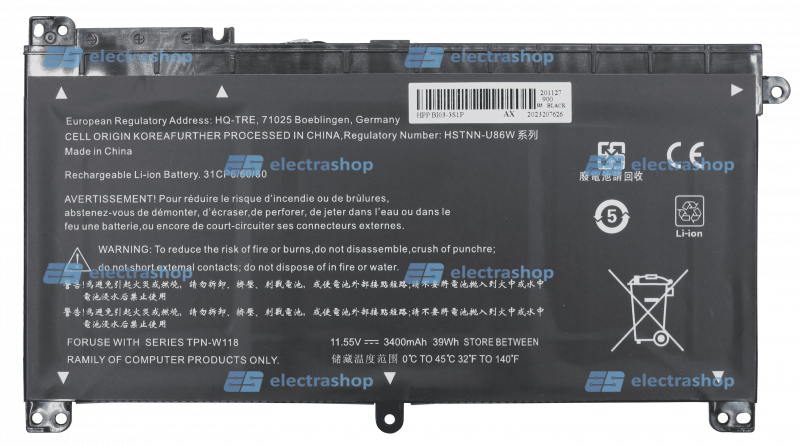 71025 2217-2548/ 3ICP6/60/80/ 843536-541 /844201-855/ HSTNN-UB6V/ NU03XL/ TPN-C128 /TPN-W118 /ZU10223-15012